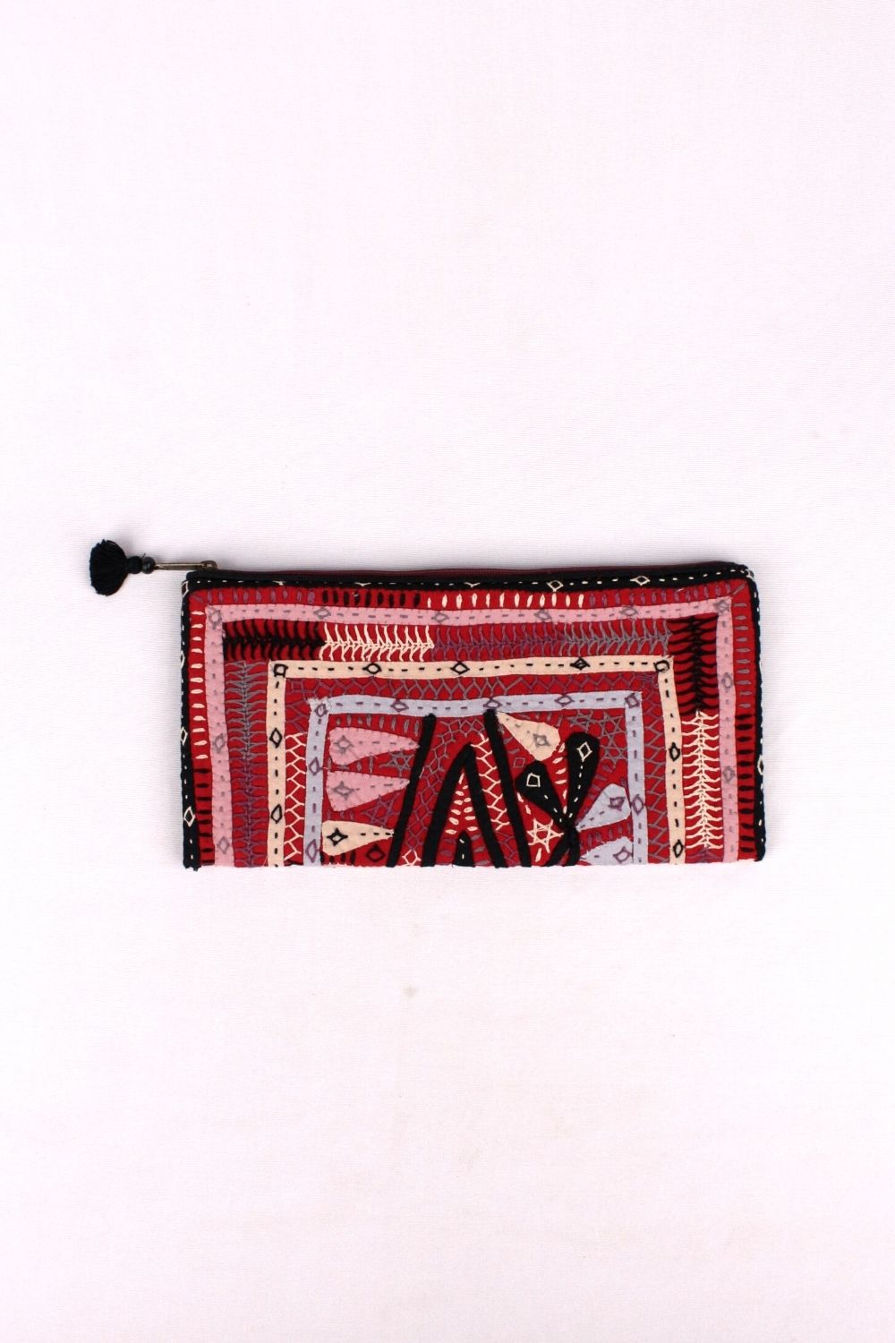 Embroidered on cloth with red and/or black wool, this toda purse is perfect for your small belongings. (design 7)