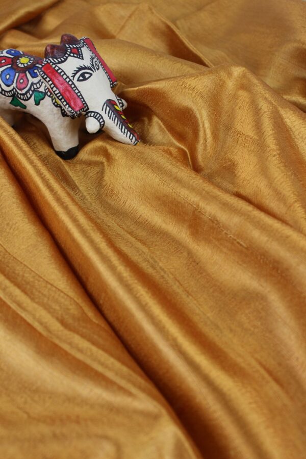 Bhagalpur district in Southern Bihar is an important centre for rich tussar silk handloom weaving. The women spin the tussar yarn and weave the saris which are self-textured.